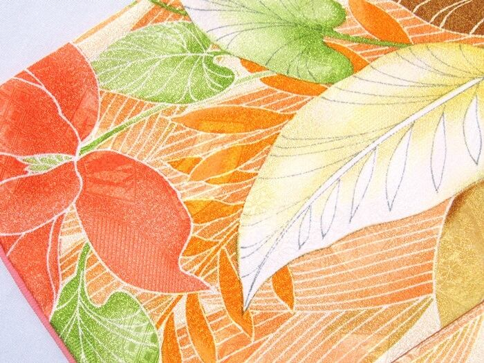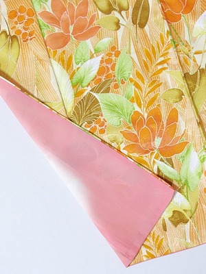 洗える化繊 【小紋袷着物】洋花/158cm前後の方ベスト★オレンジ系