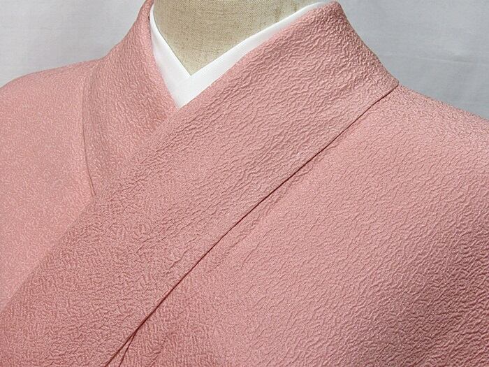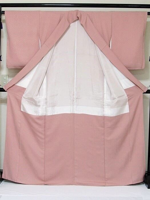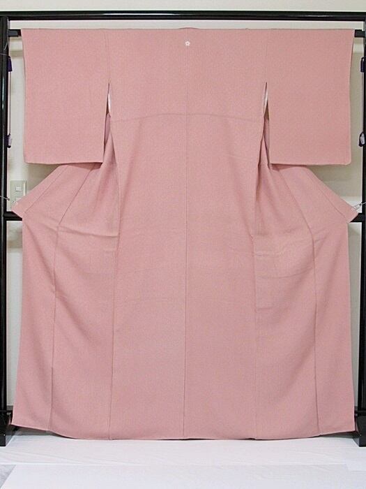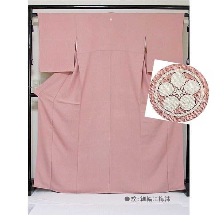 【未使用 仕付け】【色無地 一つ紋】袷/紋綸子四丈/細輪に梅鉢/石竹色(ローズピンク)☆166cm前後ベスト【超美品】お薦めです