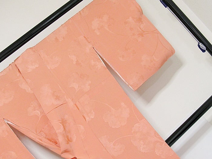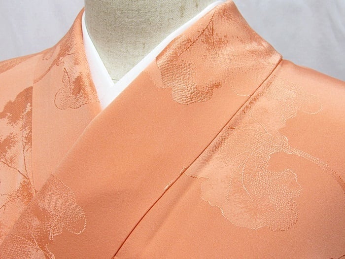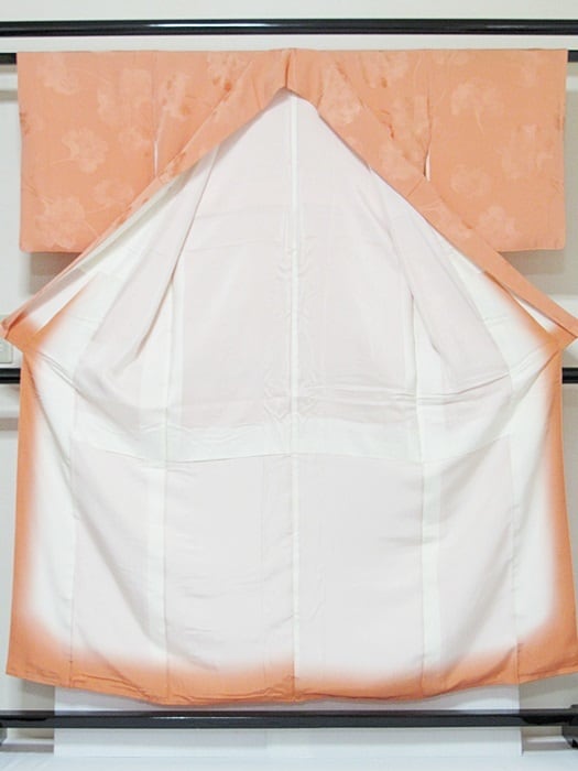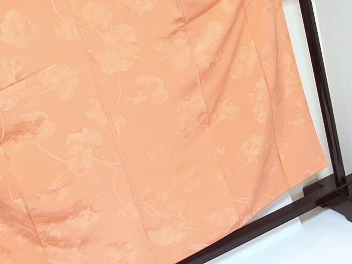【美品】サーモンピンク系1つ紋付き色無地袷着物にです。