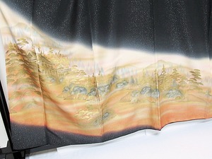 USED 留袖 色 比翼 5つ紋 金通し 落款 京洛景 黒 156cm