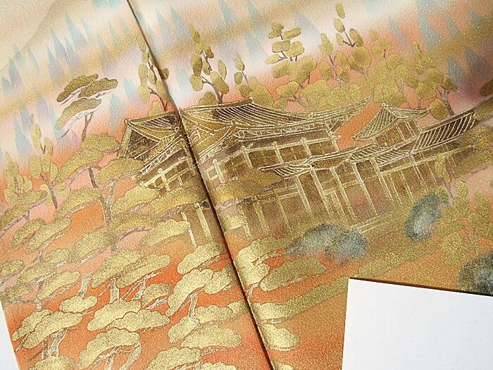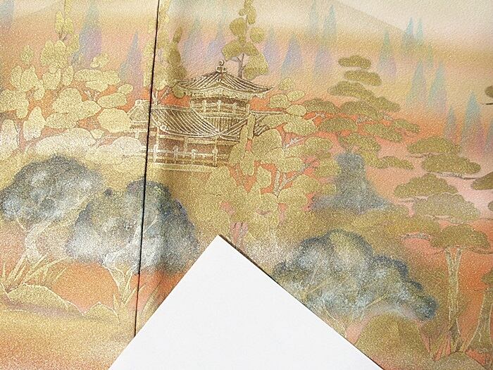 【美品】高級金通し4丈反物仕様で染め上げられた京洛景図