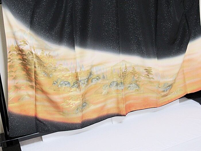 裾柄文様になります。色は墨色から黒ですが、第一礼装「黒留袖」