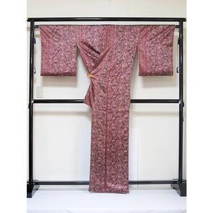 【小紋】 綸子 袷 ペイズリー /161cm前後ベストサイズ(前後)★ピンク系【美品】