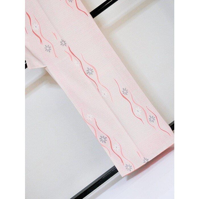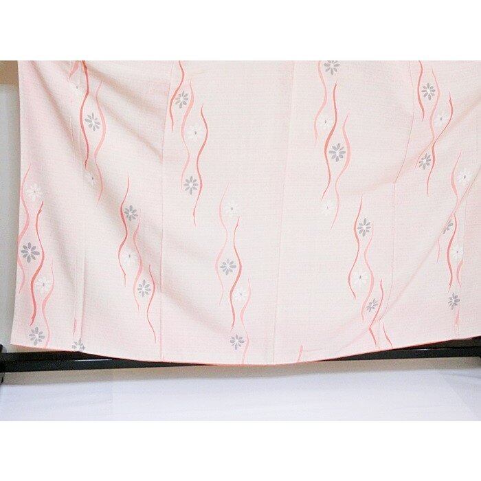 【小紋】☆袷着物 縮緬 菊縦よろけ/160cm前後ベスト★薄ピンク【美品】