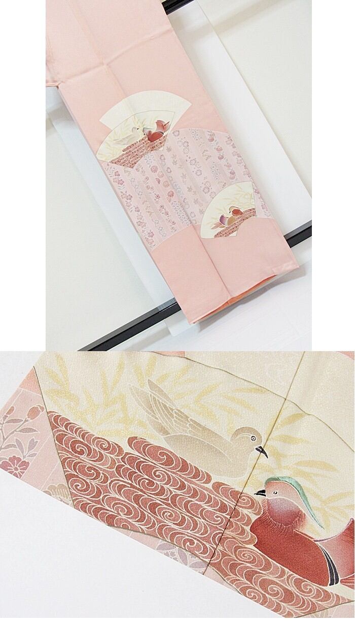 【美品】地紙にオシドリの大変状態の良い附け下げ友禅です。すぐに