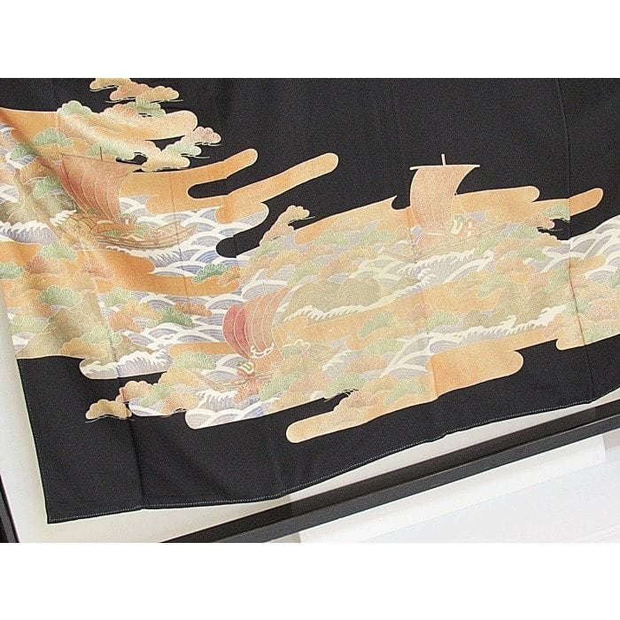 【黒留袖】落款入り/正絹比翼付き/土佐霞に宝船☆151cm前後の方ベストサイズ【美品】