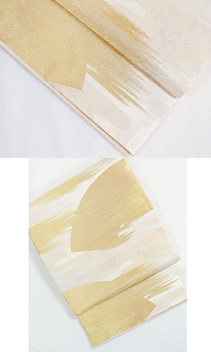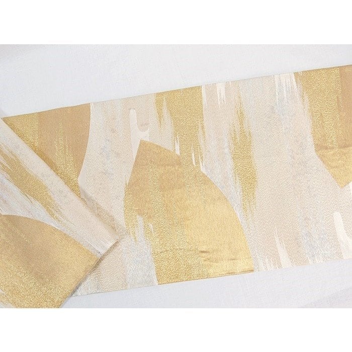 【錦 袋帯】土佐霞に地紙/白地/金/銀【美品】