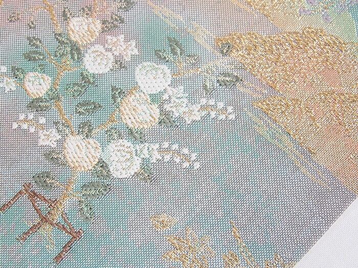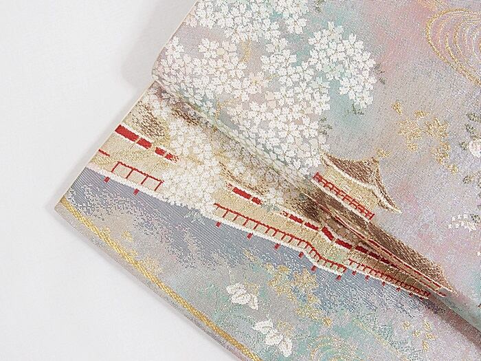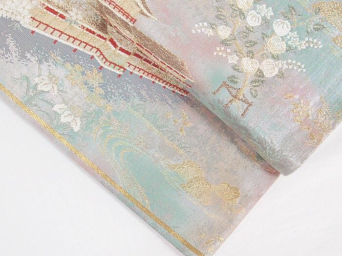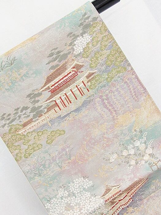 【錦袋帯】平安神宮 京の景☆ブルーグリーン他【美品】
