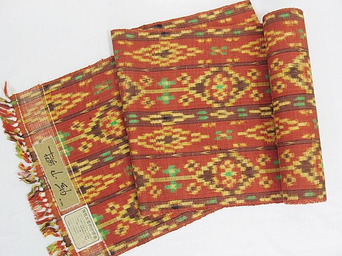 紬 楢山 上質 真綿紬 花菱 朱赤地 黄 緑他
