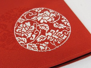 アウトレット 綴織 金封ふくさ 箱入 花丸 牡丹唐花 朱赤