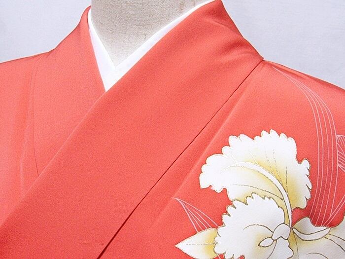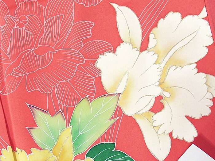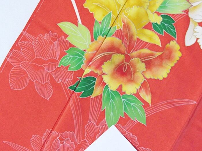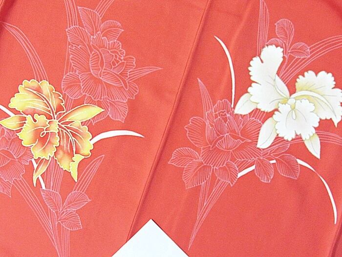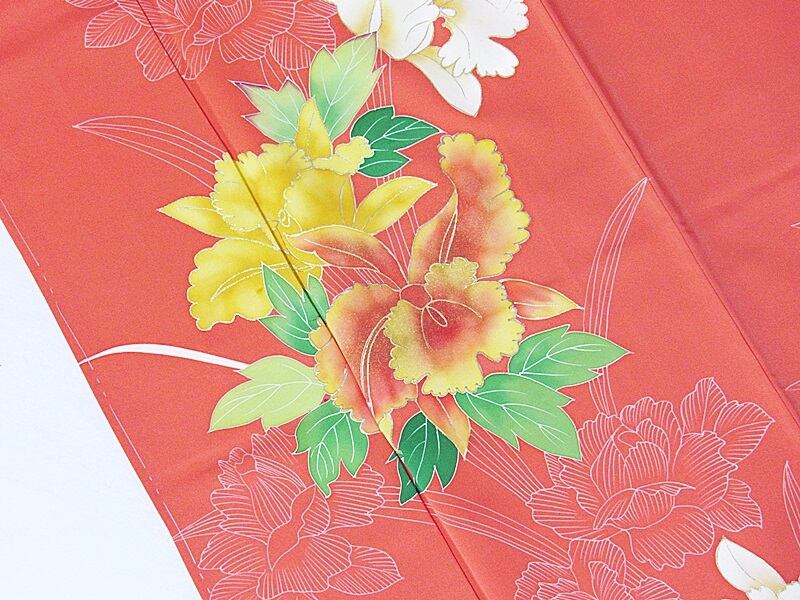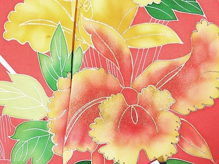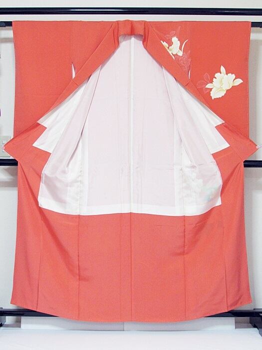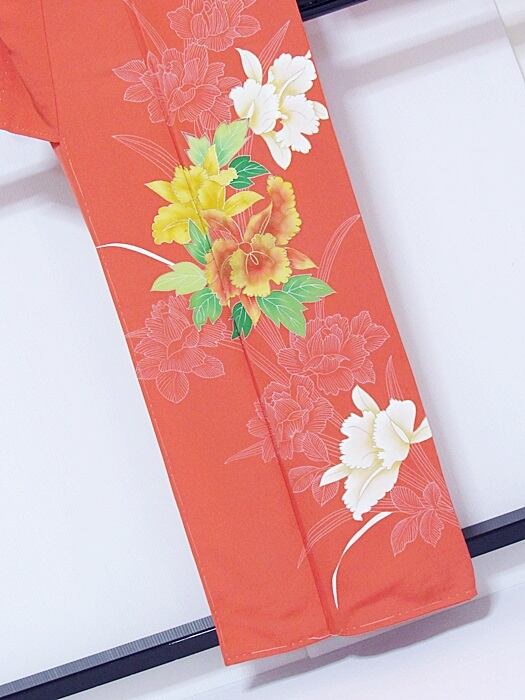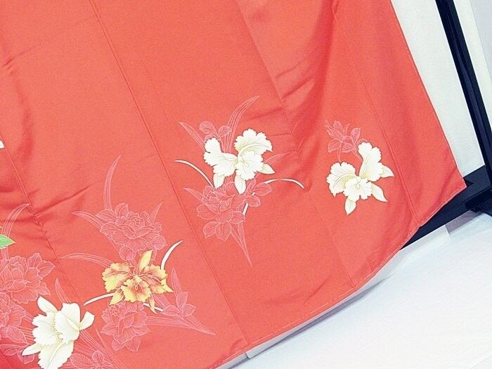 【附下げ】袷着物 カトレア/160cm前後ベスト★朱赤【美品】
