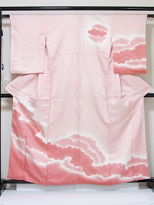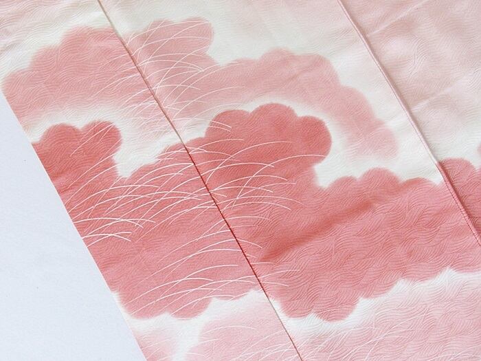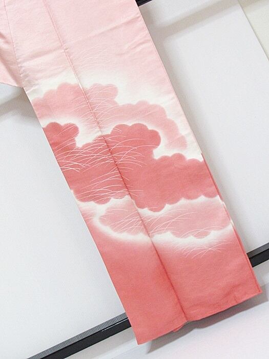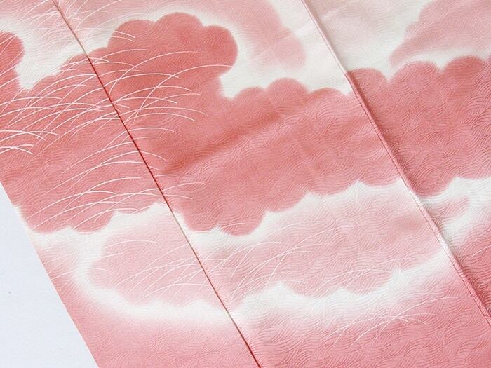 【附下げ】袷着物 雲暈かし/159cm前後ベスト★ピンク濃淡【美品】