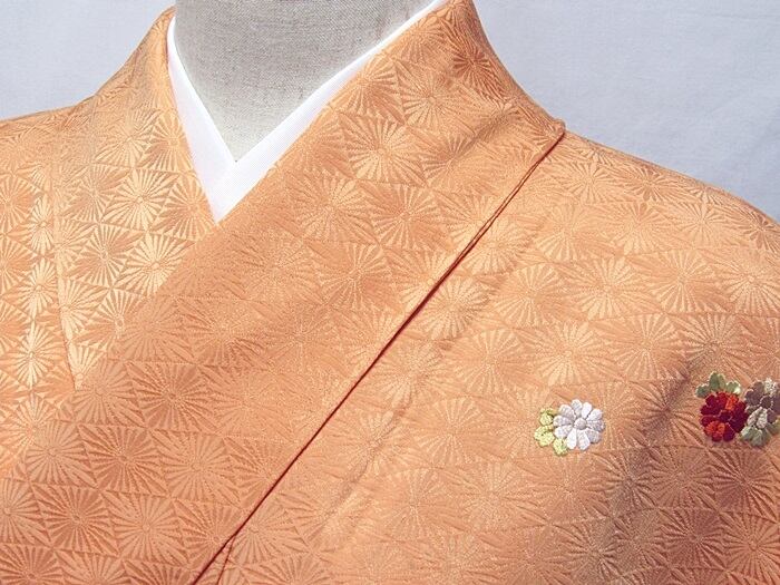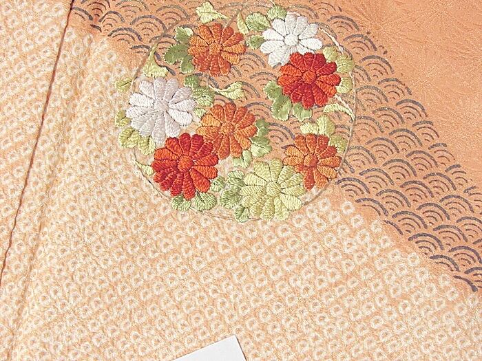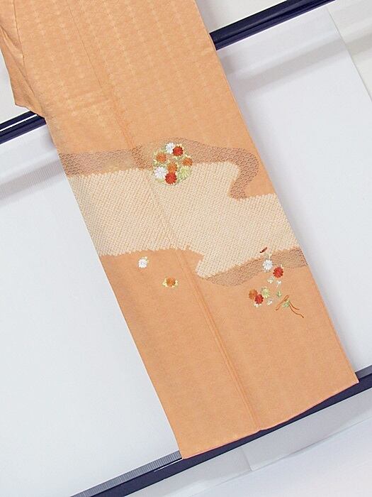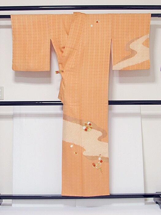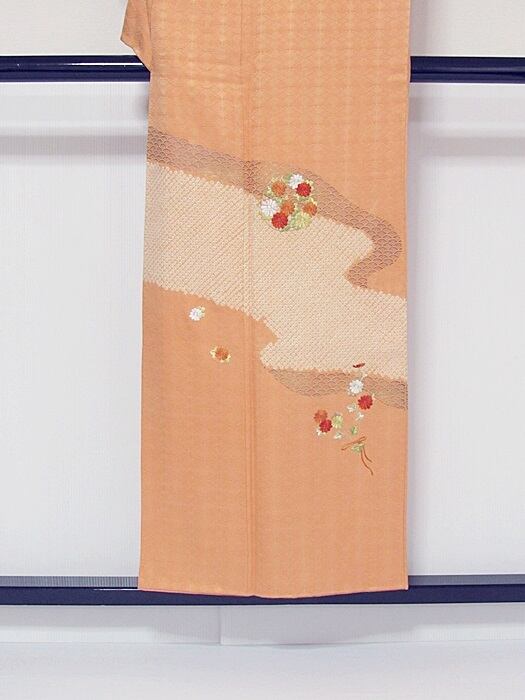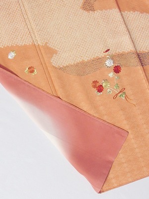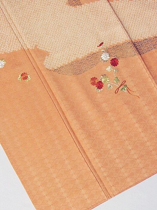 附下げ 袷 綸子 鹿の子 小紋箔 刺繍 150cm オレンジ