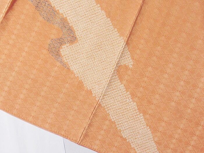 【絞り 附下げ】袷着物 綸子/疋田(鹿の子絞) 小紋箔 刺繍/150cm前後ベスト★オレンジ(あま色)