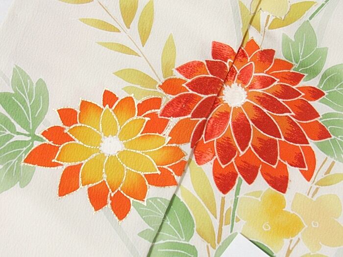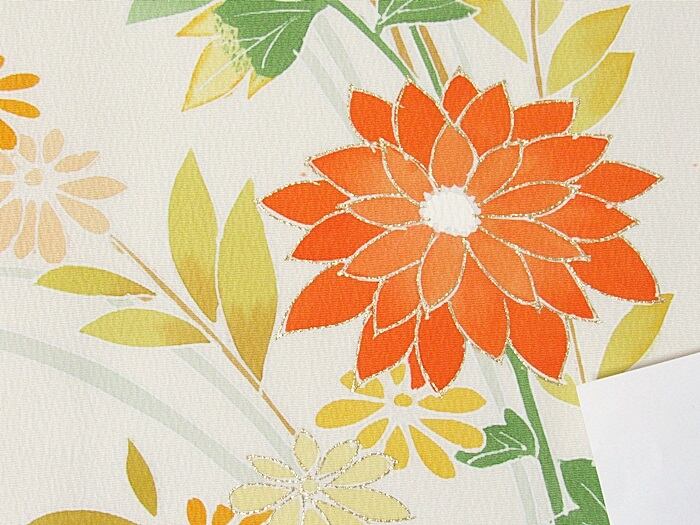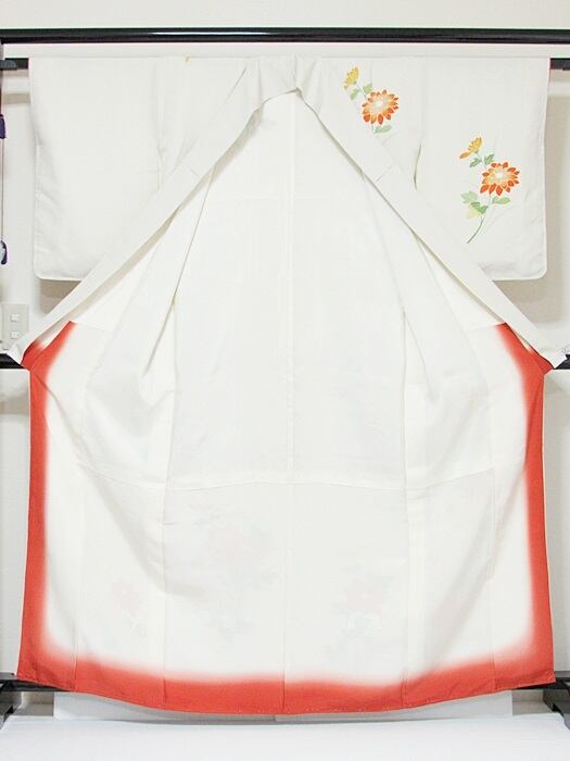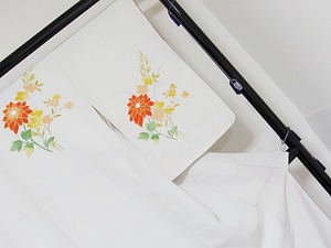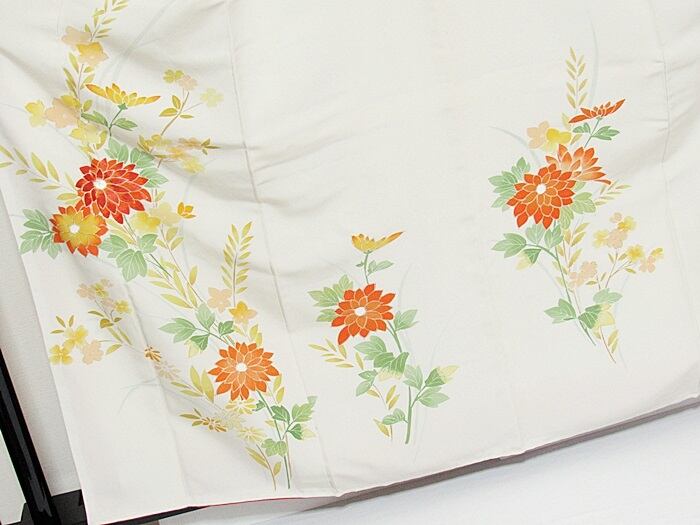 附下げ 袷 未使用 一越 菊 刺繍 164cm 灰白