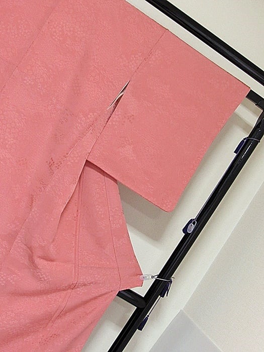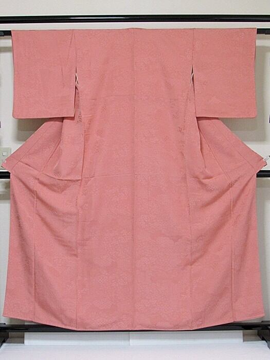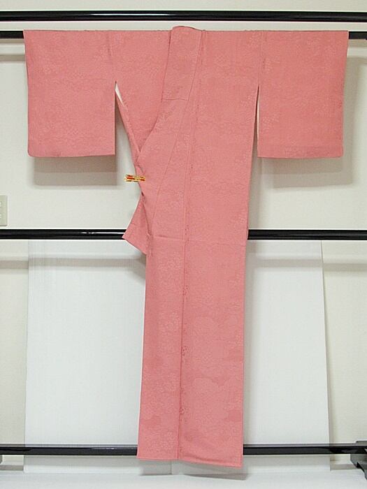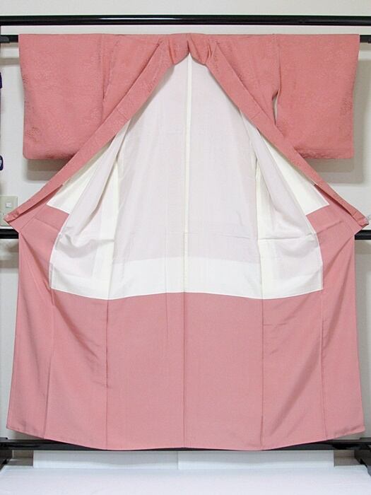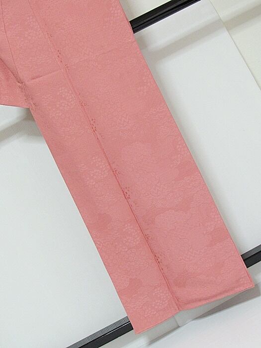 色無地 袷 紋なし 綸子 雲取り 紅葉 ダルピンク 156cm