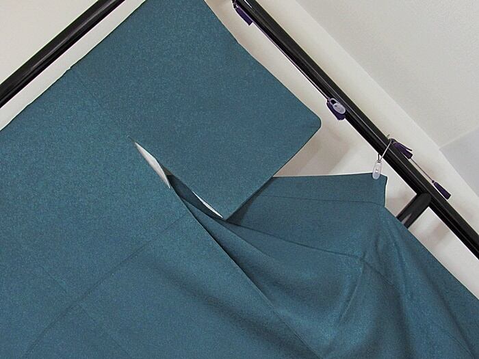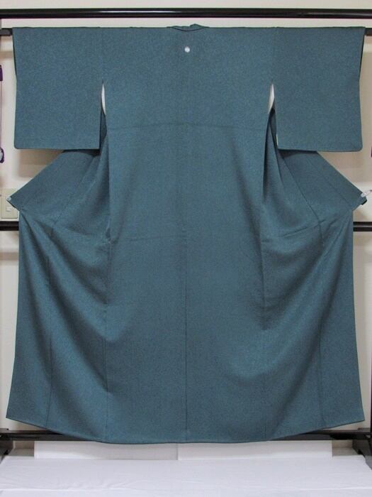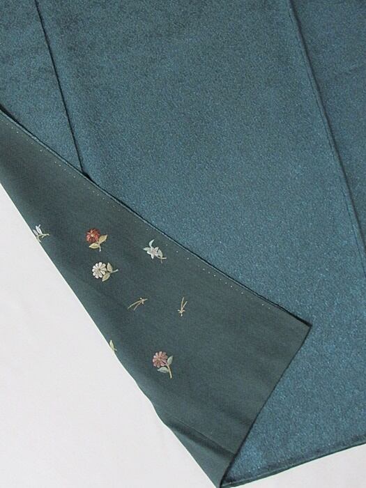 色無地 袷 1紋 綸子 八掛 刺繍 ダルブルーグリーン 156cm