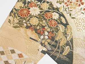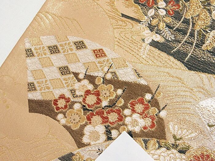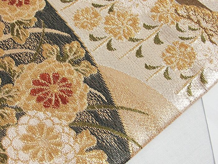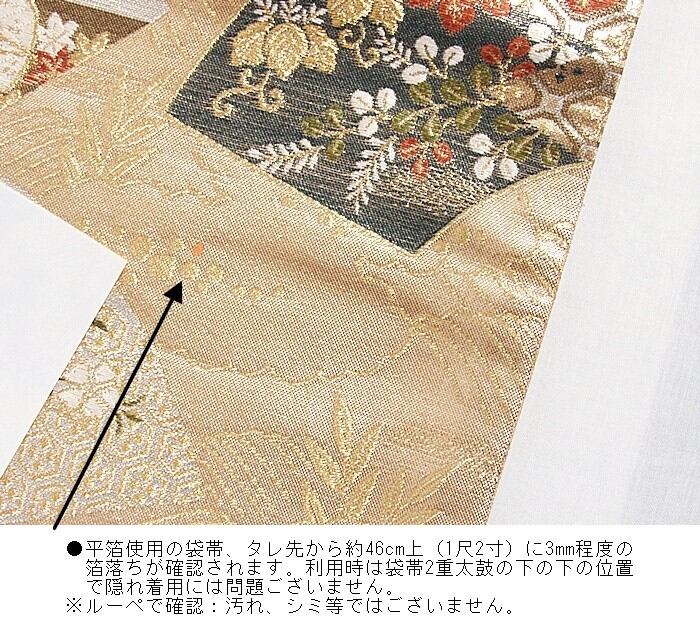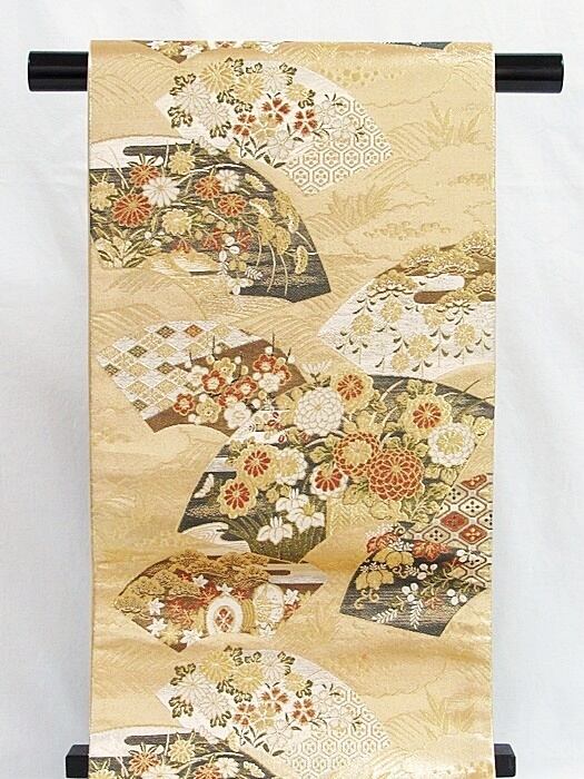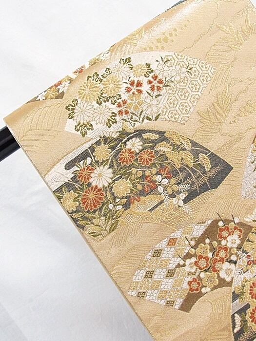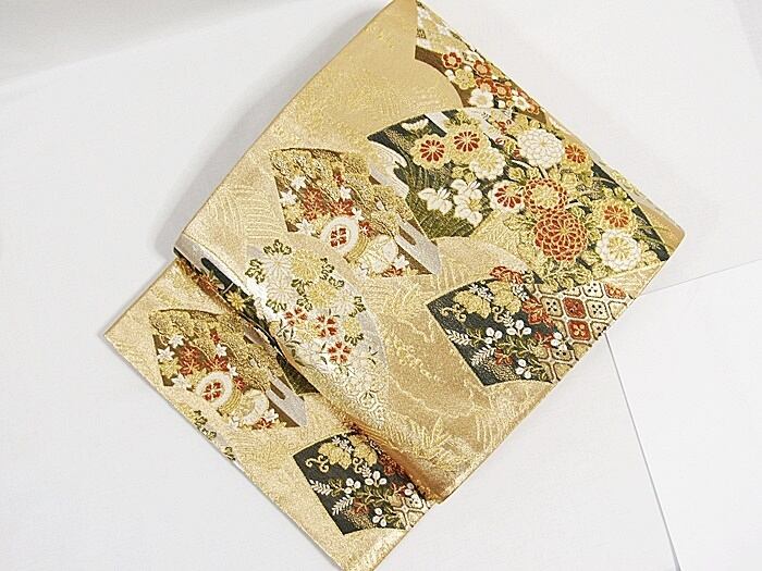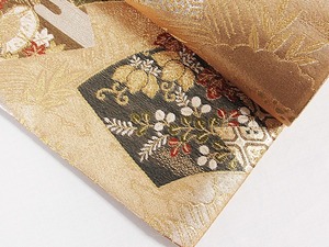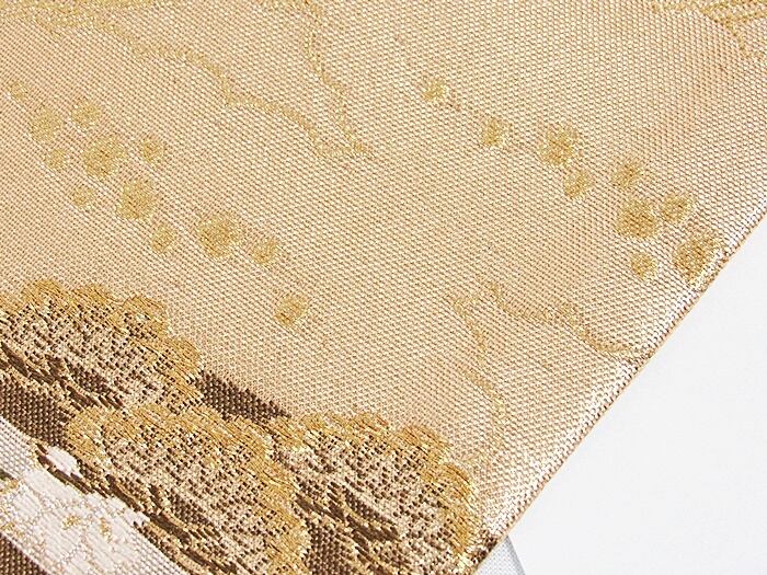 【未使用】【錦 袋帯】地紙に吉祥四季花文/ゴールド【美品】