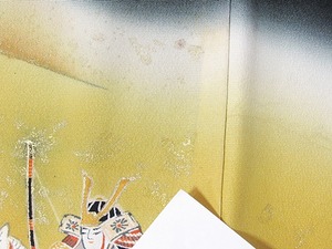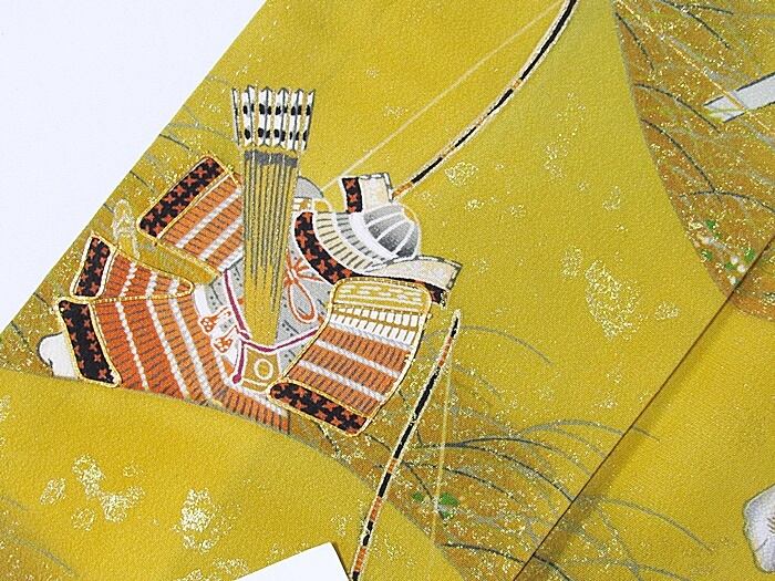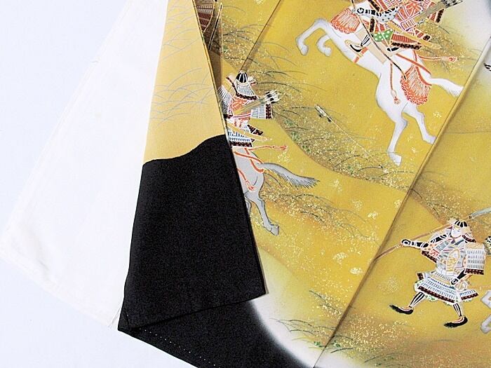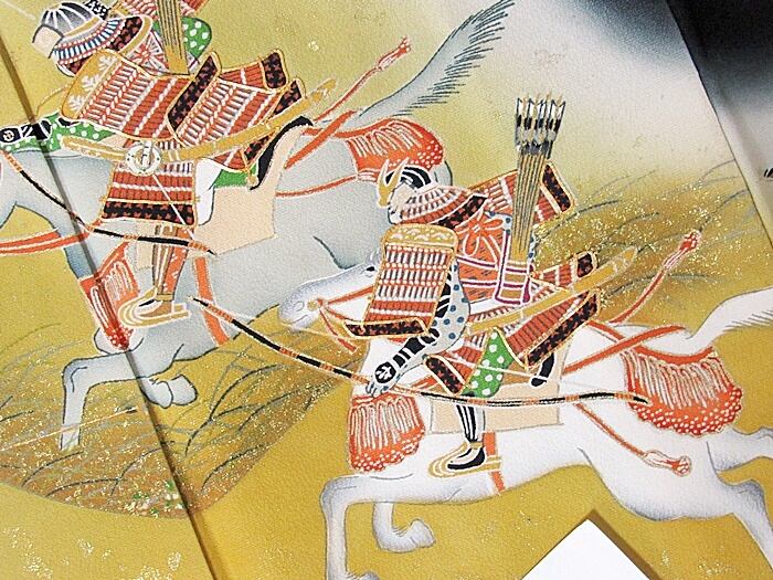 留袖 正絹比翼 刺繍 戦国 合戦 菜種色暈し154cm