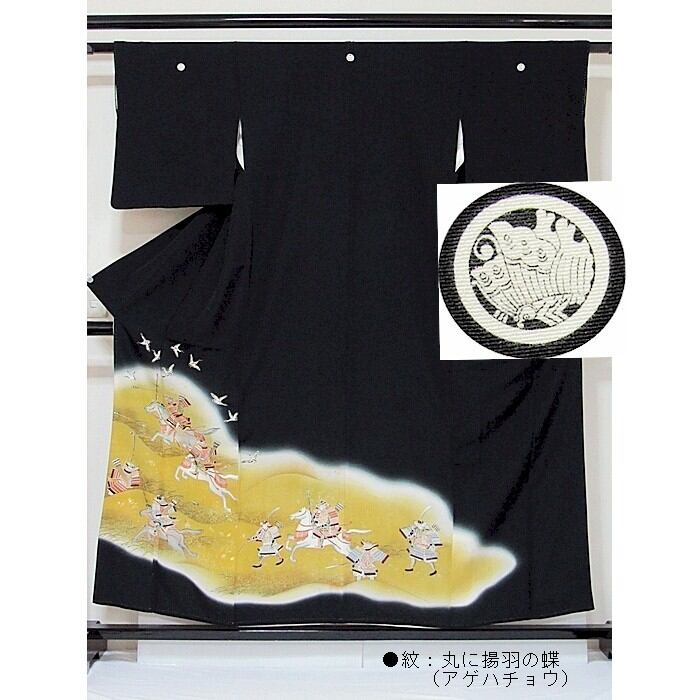 【黒留袖】一越 正絹比翼 刺繍(金駒) 戦国合戦絵図/菜種色暈し☆154cm前後の方ベストサイズ【美品】