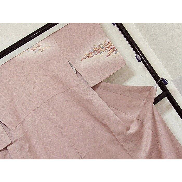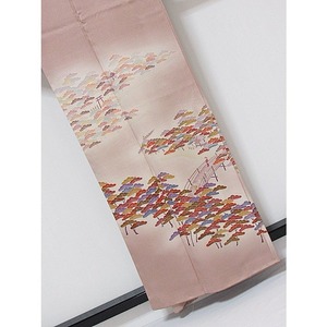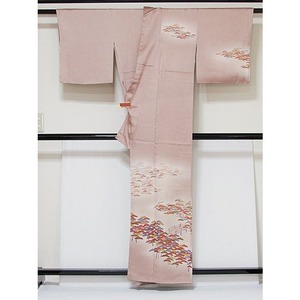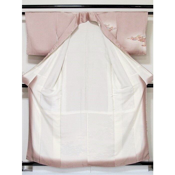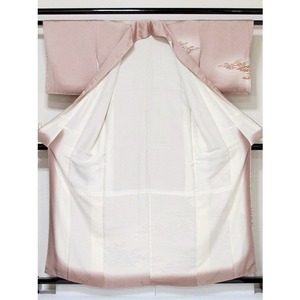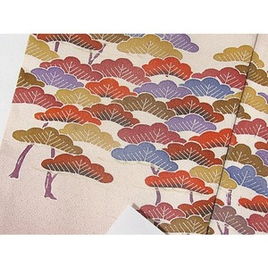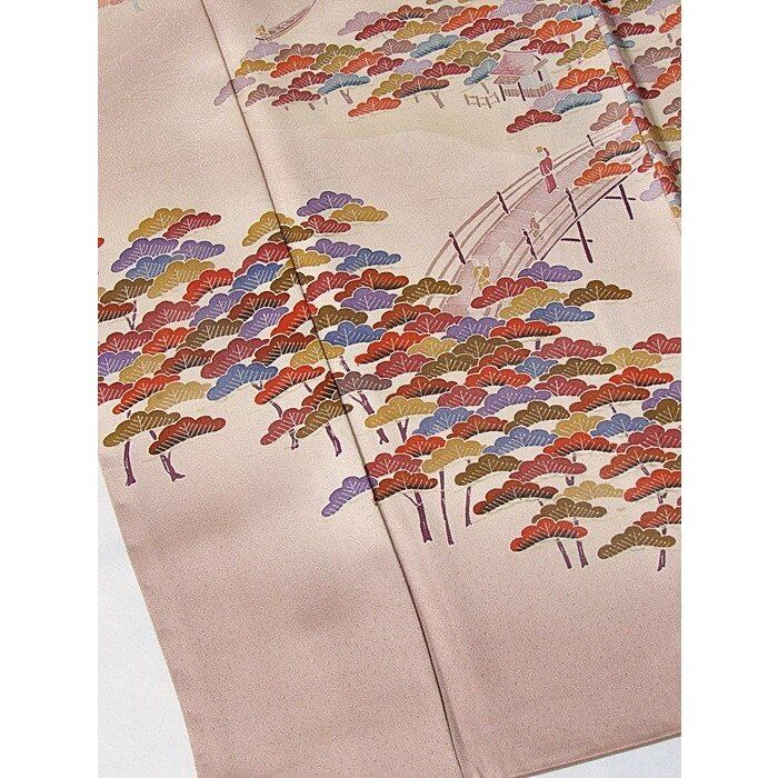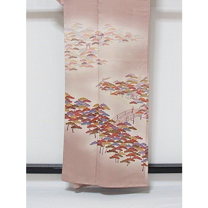 附下げ 袷 綸子 京洛景 松 160cm ピンクブラウン