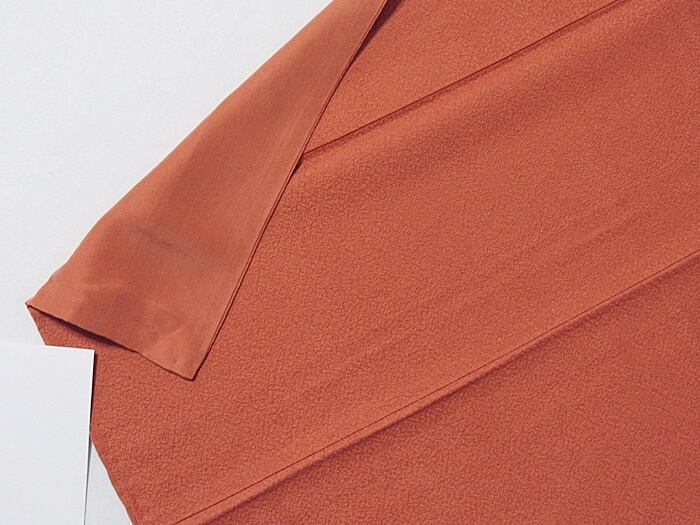 【色無地】袷 紋なし/紋綸子(サヤ型)/ダークオレンジ系☆150cm前後ベスト【美品】