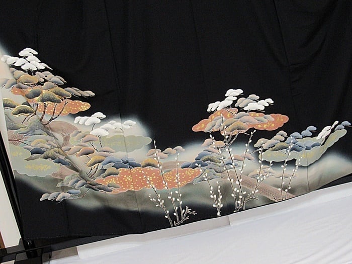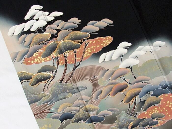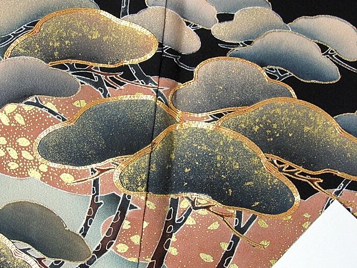 猫柳柄です。春、雪持ち松が冬を越し、後ろ身頃