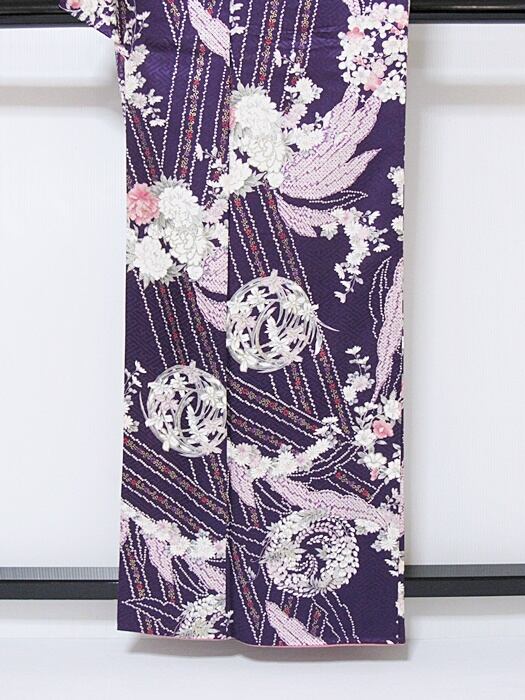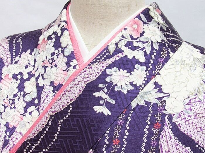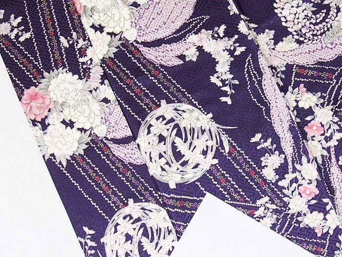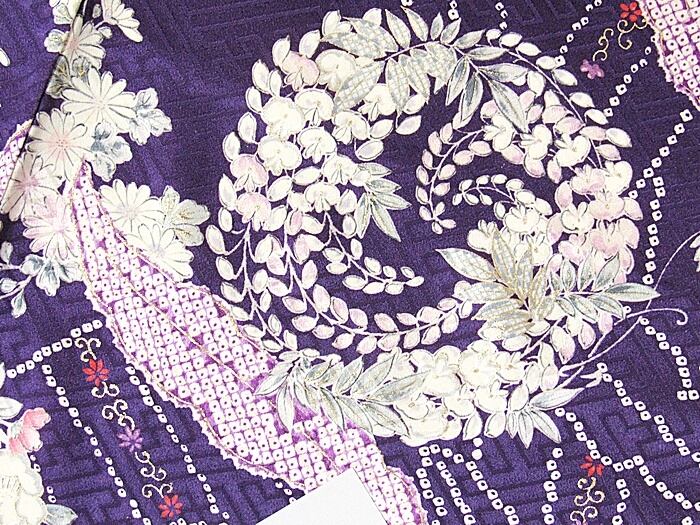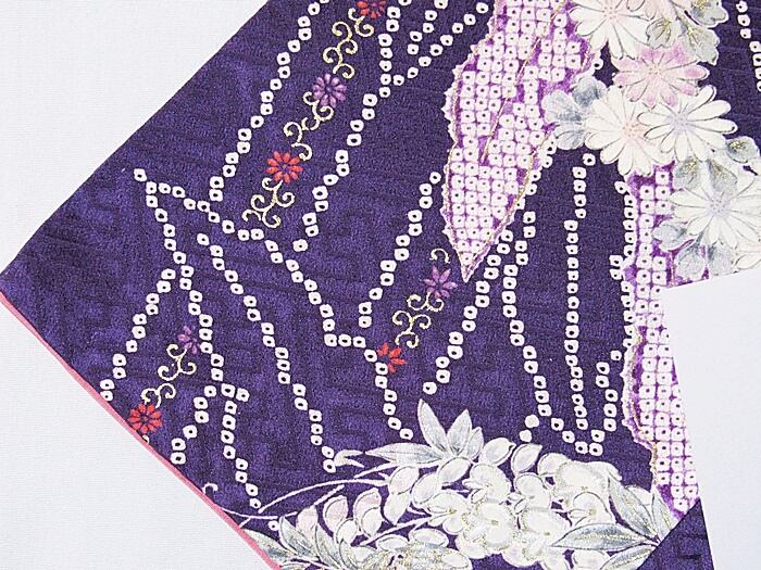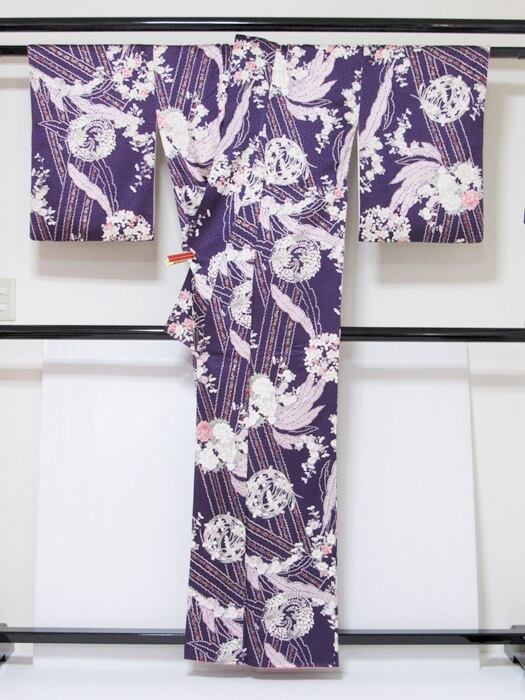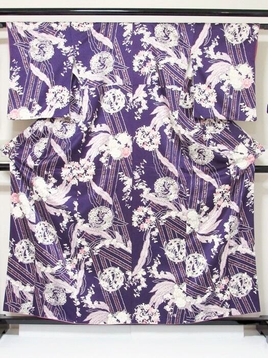 小紋 重ね衿 袷 花丸文様 ダークバイオレット 159cm