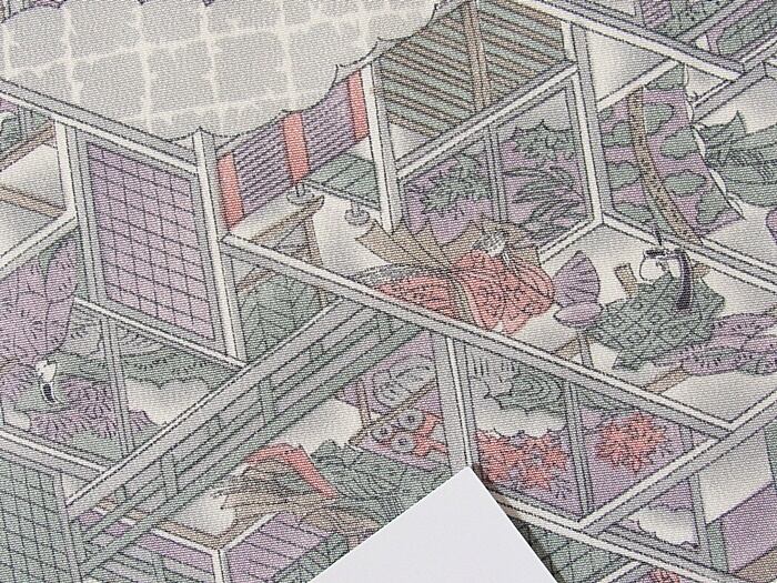 【美品】御所絵図が描かれた小紋袷着物になります。