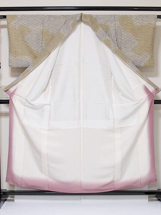 ◆素材:正絹100% 綸子(青海波 金糸が織り込まれている)画像あり