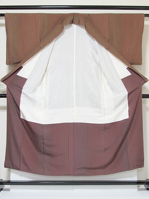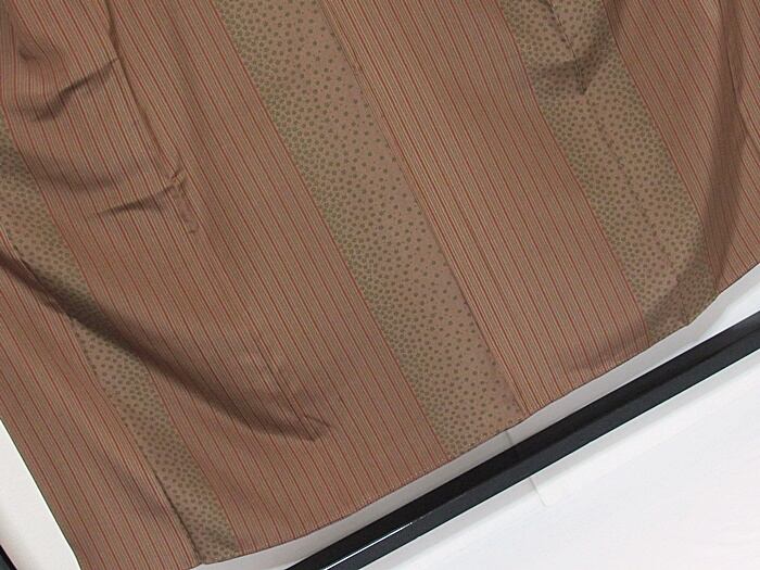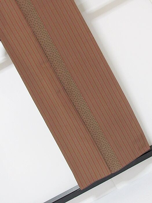 小紋 袷着物 綸子 縦縞 桜小花 茶系 151cm