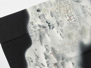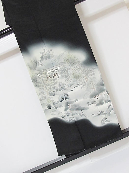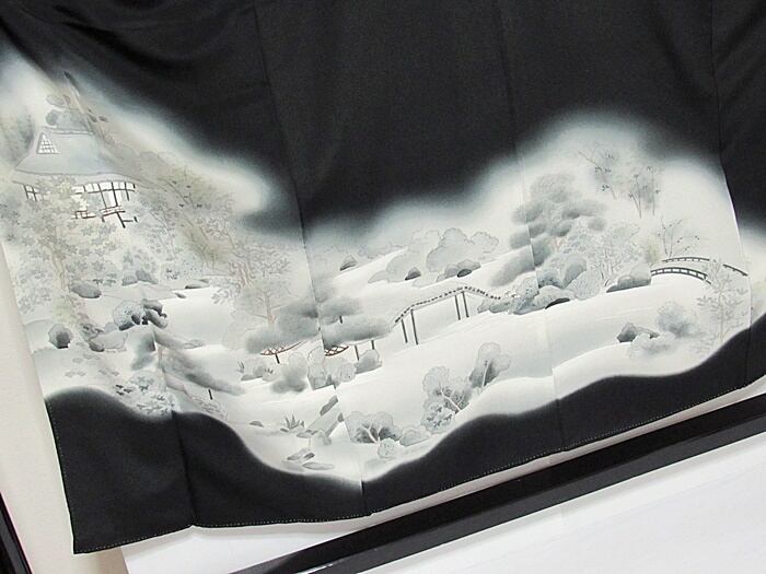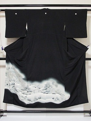 【黒留袖】正絹 一越 比翼なし バチ衿 三宝院絵図☆151cm前後の方ベストサイズ