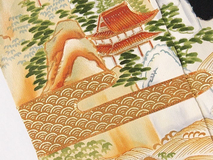 刺繍(金駒)入り、使用感あり。比翼衿山スジ、胴裏、絹