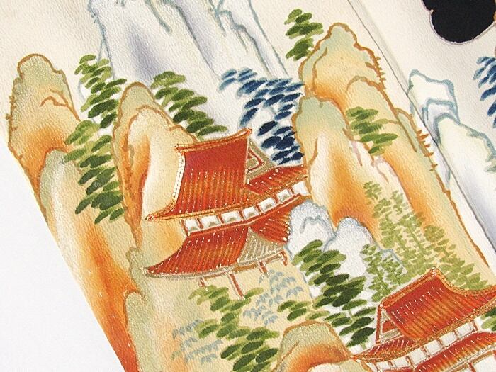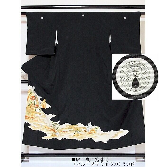 黒 留袖 一越 比翼 一越 刺繍 蓬莱山 151cm