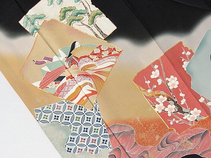 黒 留袖 一越 比翼 刺繍 道長 色紙 姫 松竹梅 152cm