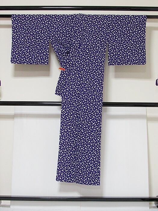 洗える 単衣 小紋 石 紫 141cm SS寸 踊り イベント