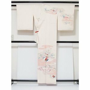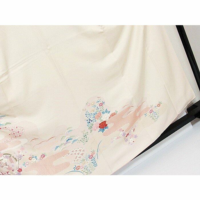訪問着 刺繍 刷疋田 ヱ霞 吉祥花 159cm ペールイエローピンク