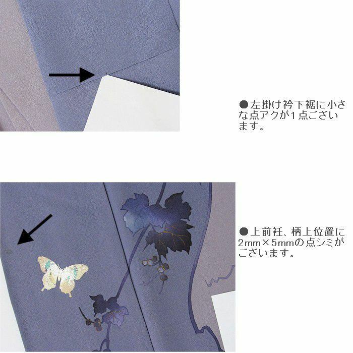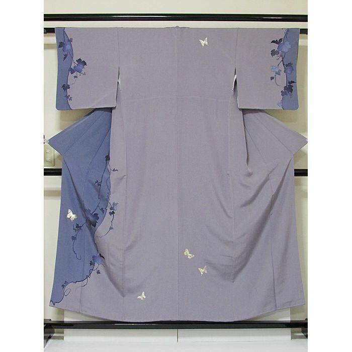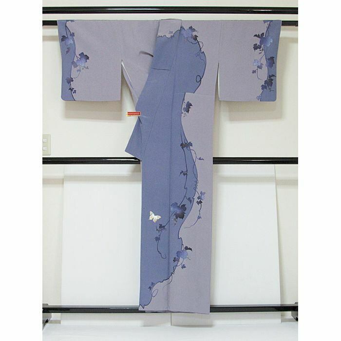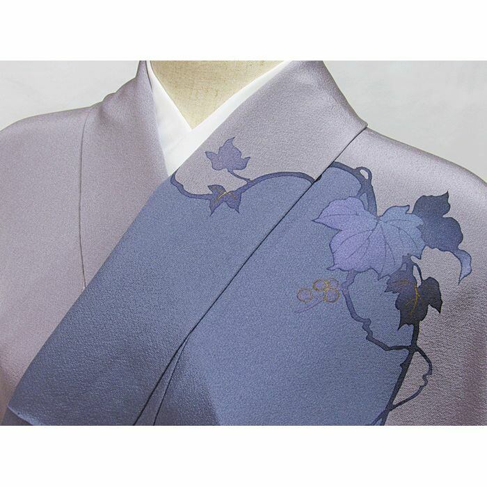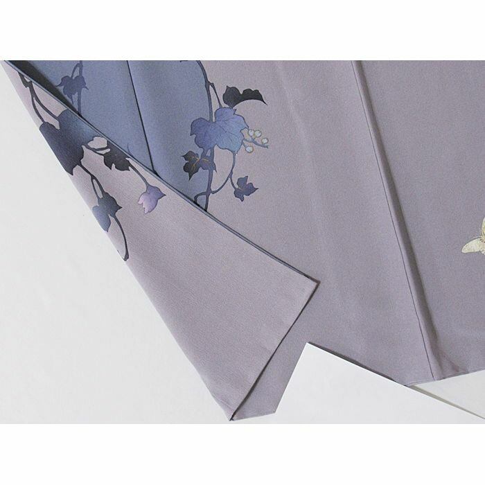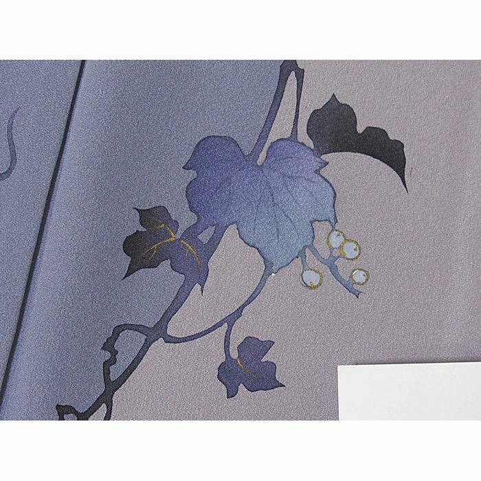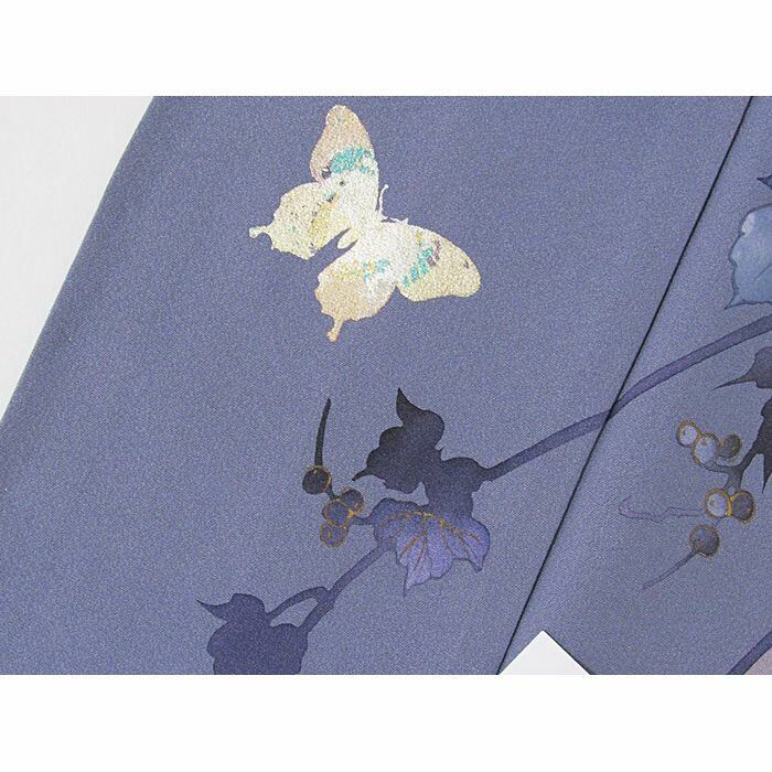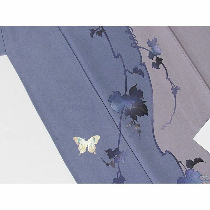 パープルの染め分け、蔓葡萄に蝶が描かれた附下