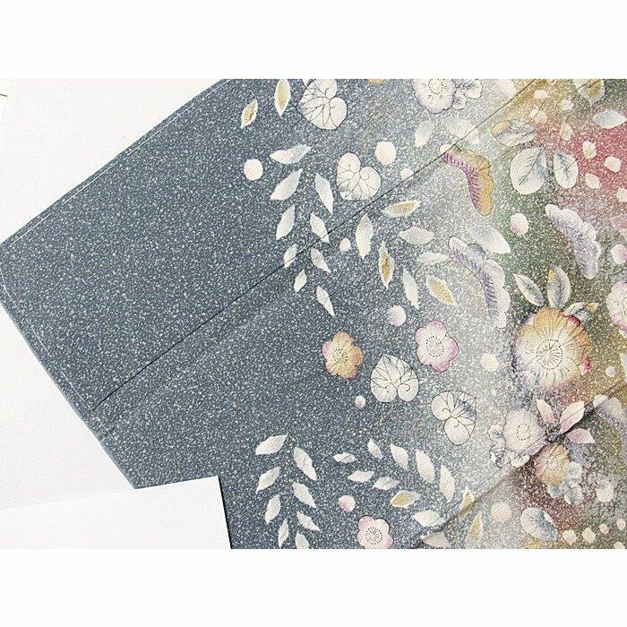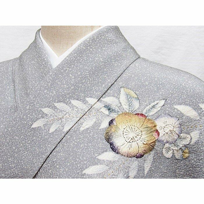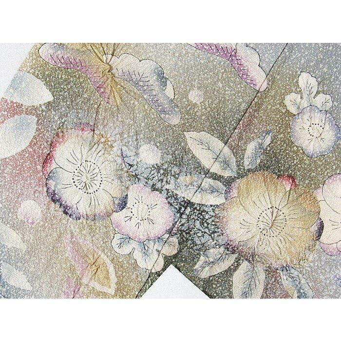 ペールグレー糊こぼし技法、辻ヶ花は絞り仕様で