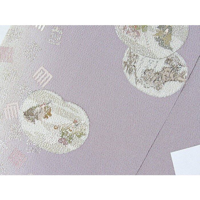 色留 縮緬 正絹 1紋 落款 刺繍 源氏香 百寿字文 150cm