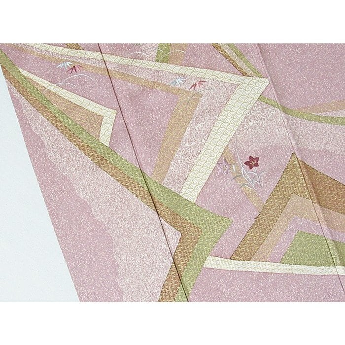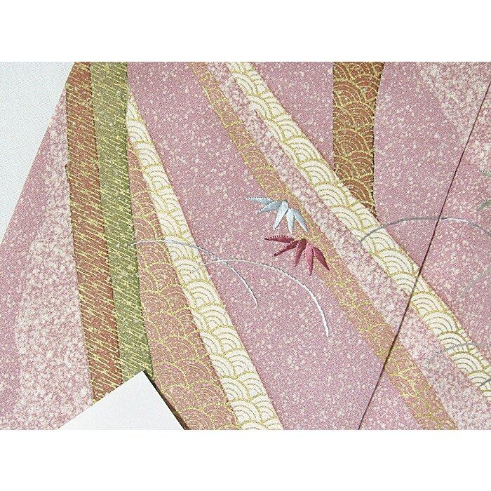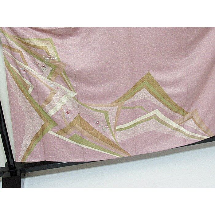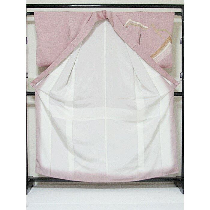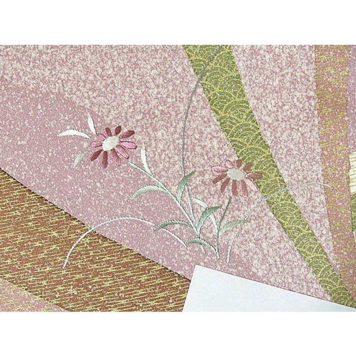 附下げ 袷 綸子 刺繍 菊 桔梗 笹 ピンク系 158cm