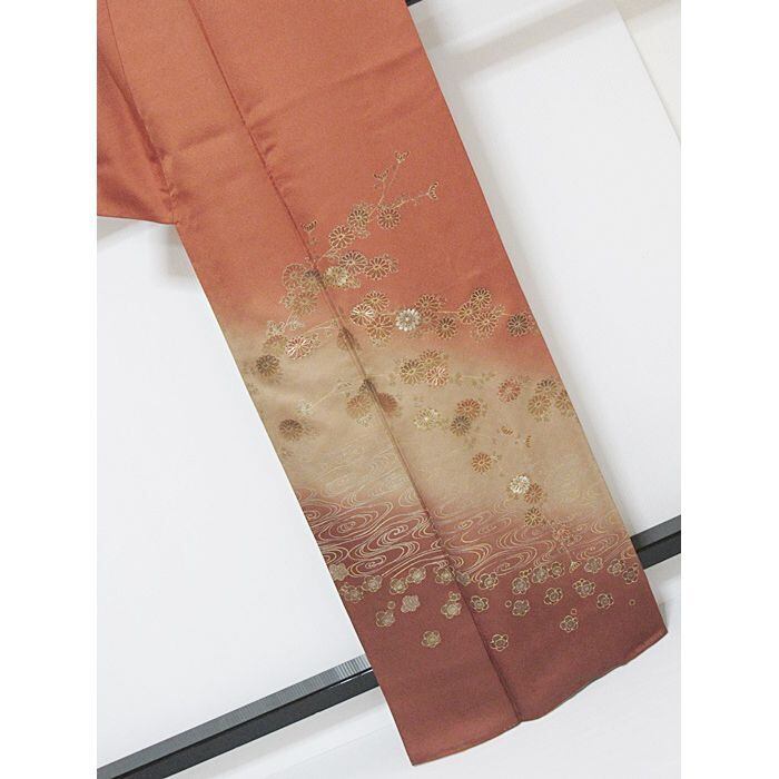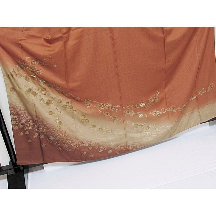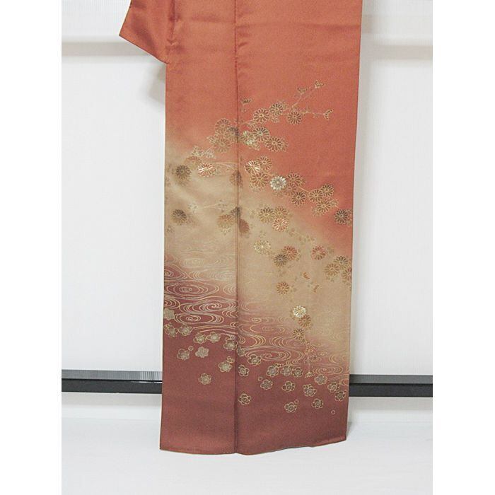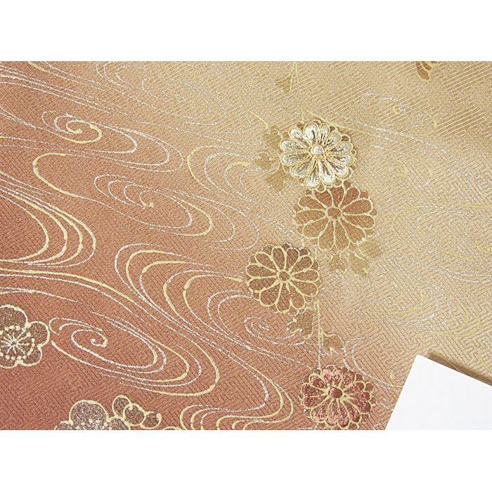 【美品】綸子生地に観世水に枝垂れ菊と梅柄
