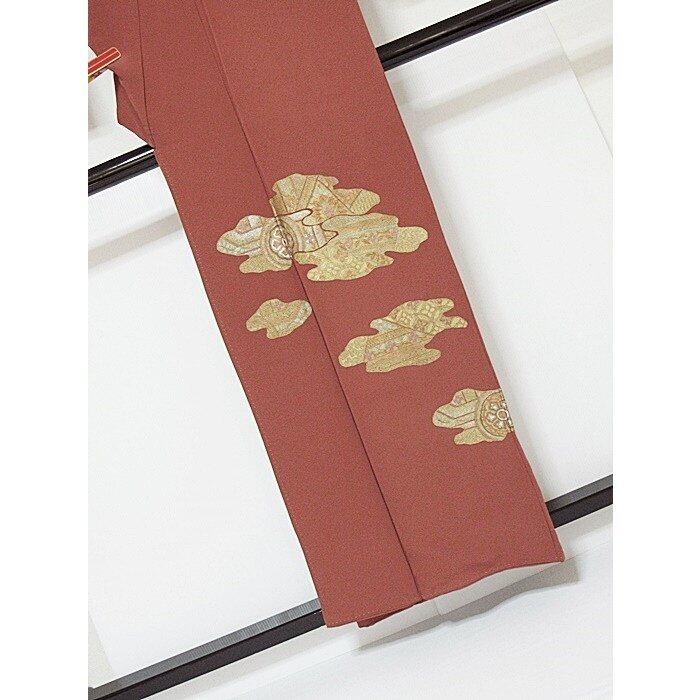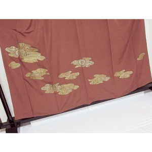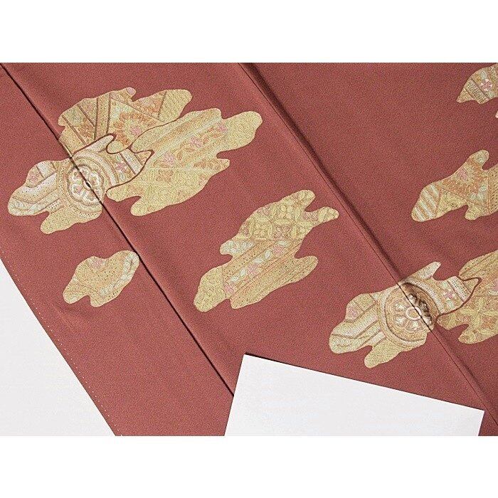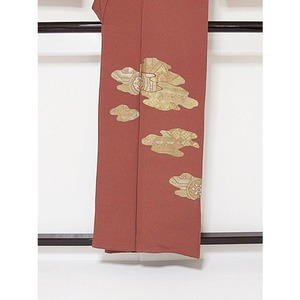 附下げ 袷着物 仕付け(袖) 汕頭刺繍 箔 霞に土車 155cm前後ベスト 超美品 お薦めです