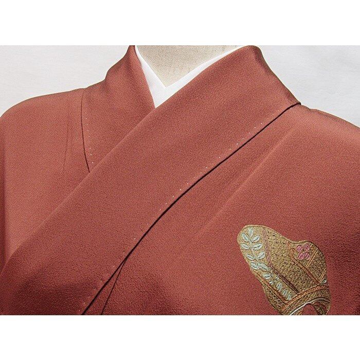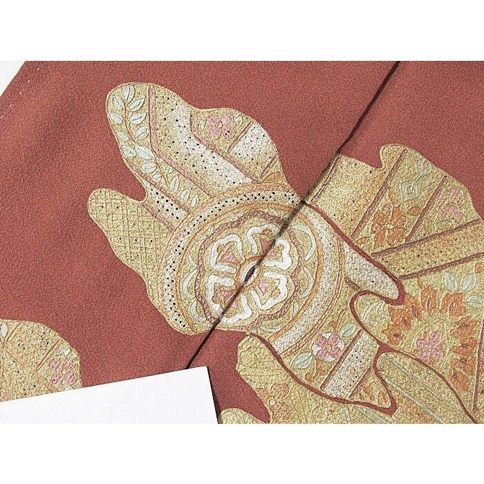 附下げ 袷 袖仕付け 汕頭刺繍 箔 霞 土車 155cm前後