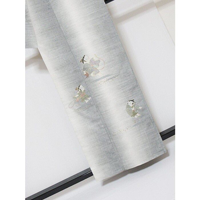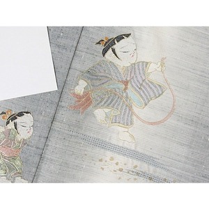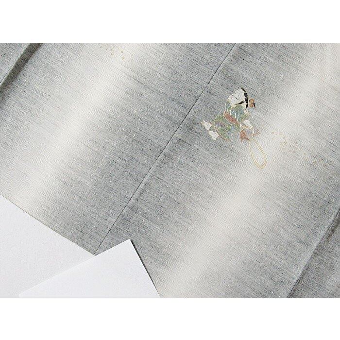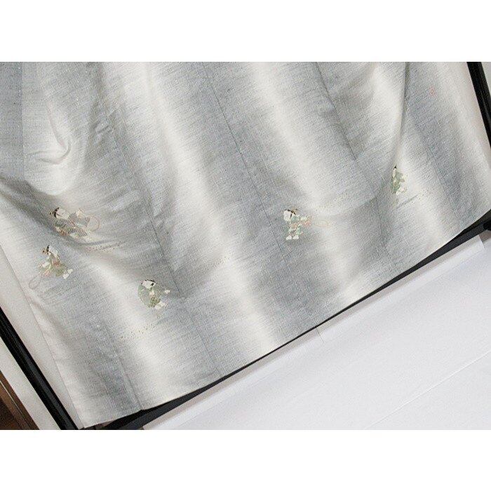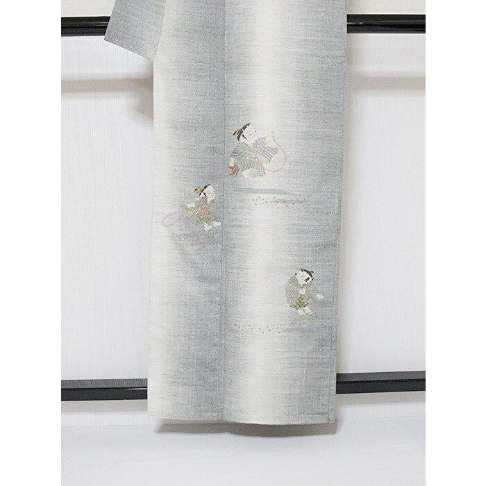附下げ 袷 紬 落款 作家 手描 刺繍 遊び 童子 155cm前後