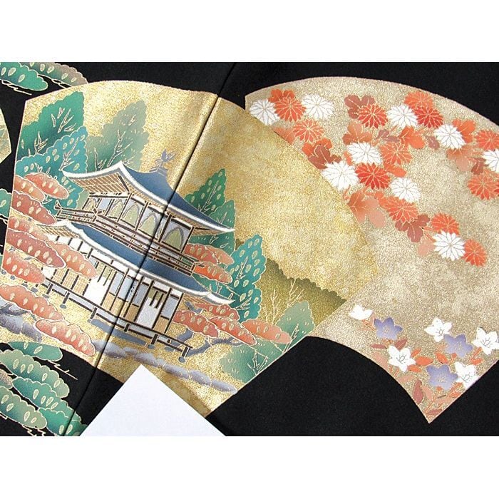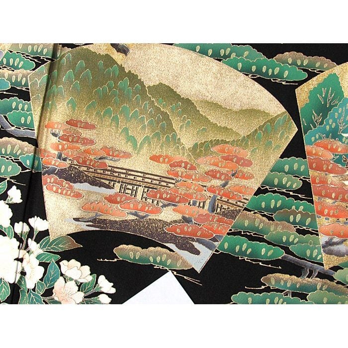 高い着物の紹介です。枝桜に地紙 波に松 鶴