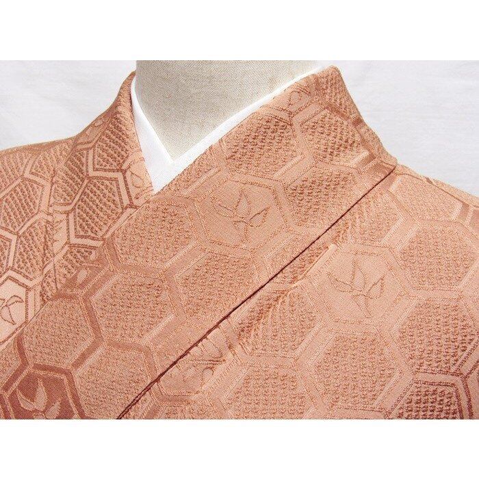 使用感なし 仕付け 色無地 袷 1つ紋 紋綸子 レディッシュブラウン 158cm前後ベスト 美品