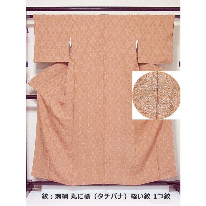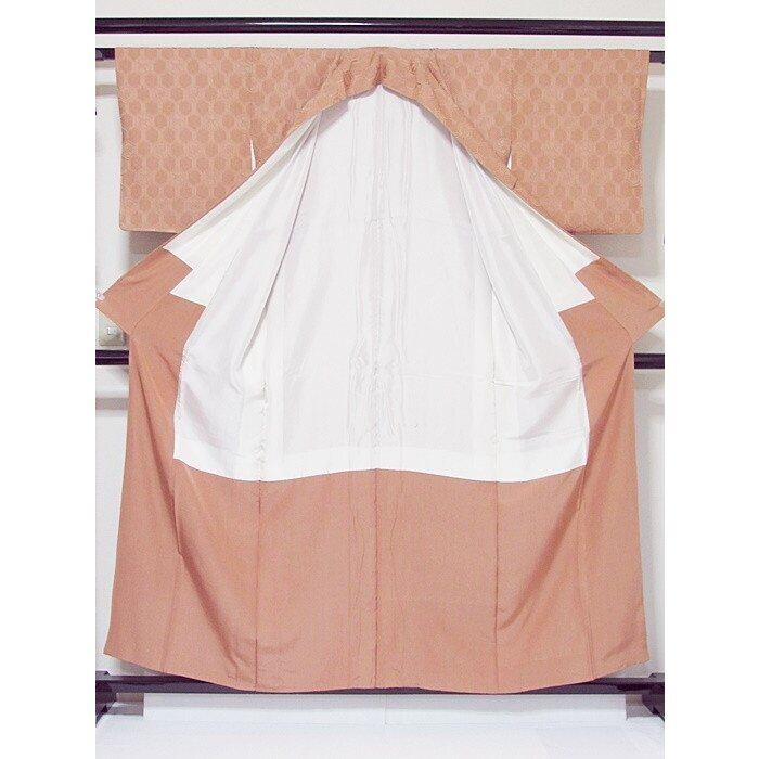 仕付け 色無地 袷 1紋 紋綸子 レディッシュブラウン 158cm前後