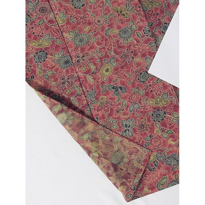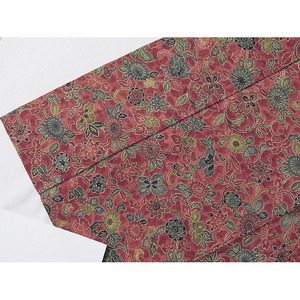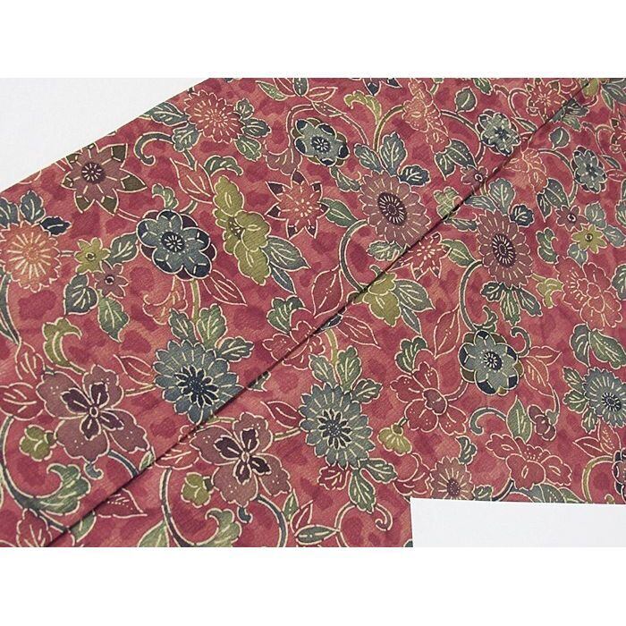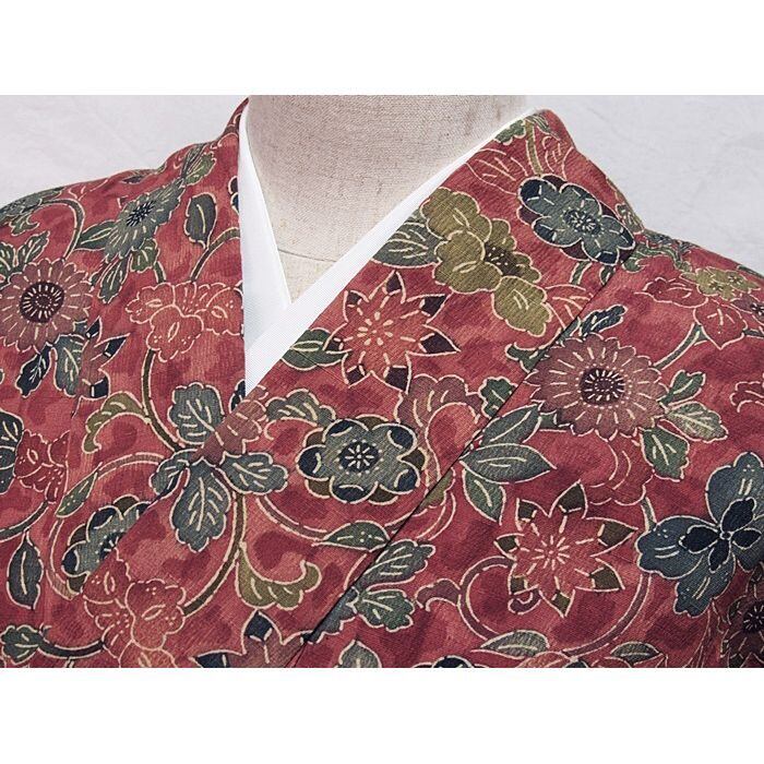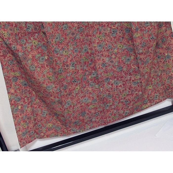 小紋 単衣 牡丹唐花 牡丹かかった臙脂 150cm前後