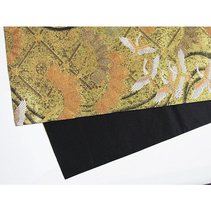未使用 錦袋帯 流水 格天井 松 鶴 黒地